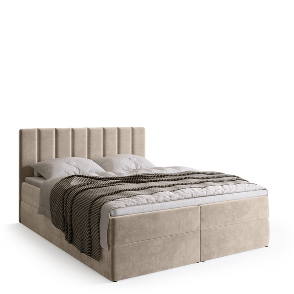 Tapicerowane łóżko kontynentalne beżowe do sypialni 140x200 cm TESSA