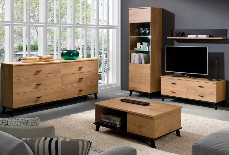 Dwudrzwiowa komoda z szufladami nowoczesna 130 cm MERIDA dąb sonoma