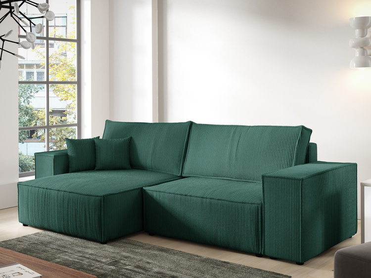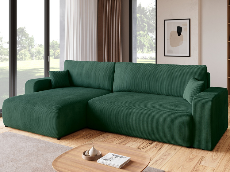 Zielony narożnik do salonu w kształcie U z funkcją spania sztruksowy PABLO MAXI