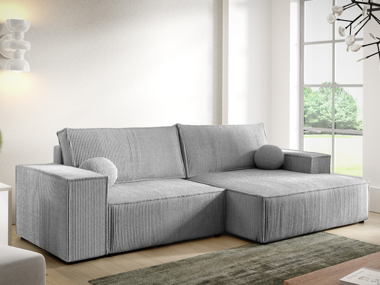 Szara rozkładana kanapa narożna do salonu z funkcją spania QULIO