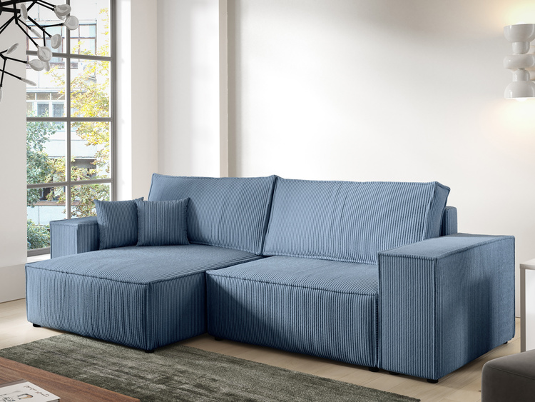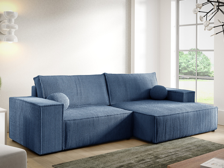 Sztruksowy narożnik z funkcją spania do salonu niebieski duży PABLO