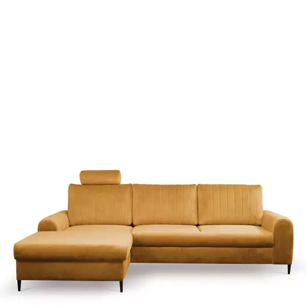 Sztruksowy musztardowy narożnik rozkładany do salonu PABLO MINI