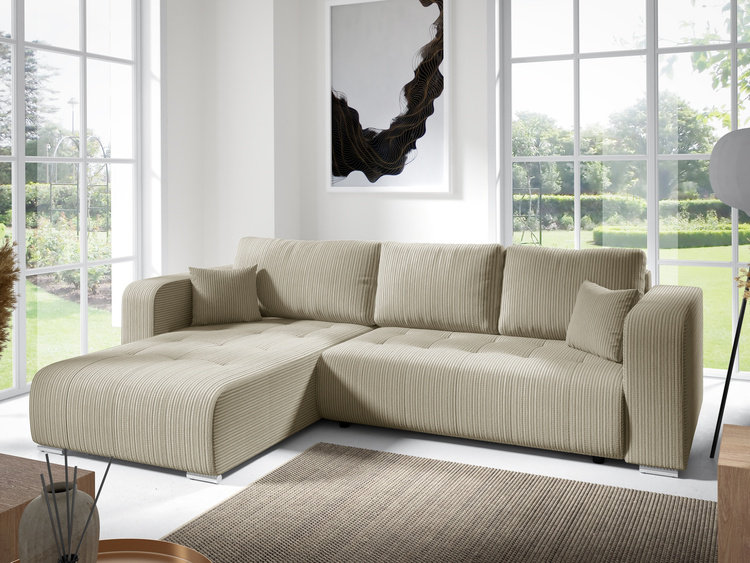 Przestronny narożnik z funkcja spania PAULLETTO regulowane zagłówki