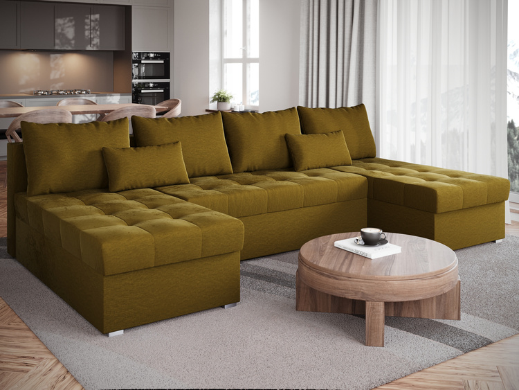 Duży narożnik U do salonu nowoczesny z funkcją spania sztruksowy PATI MAXI