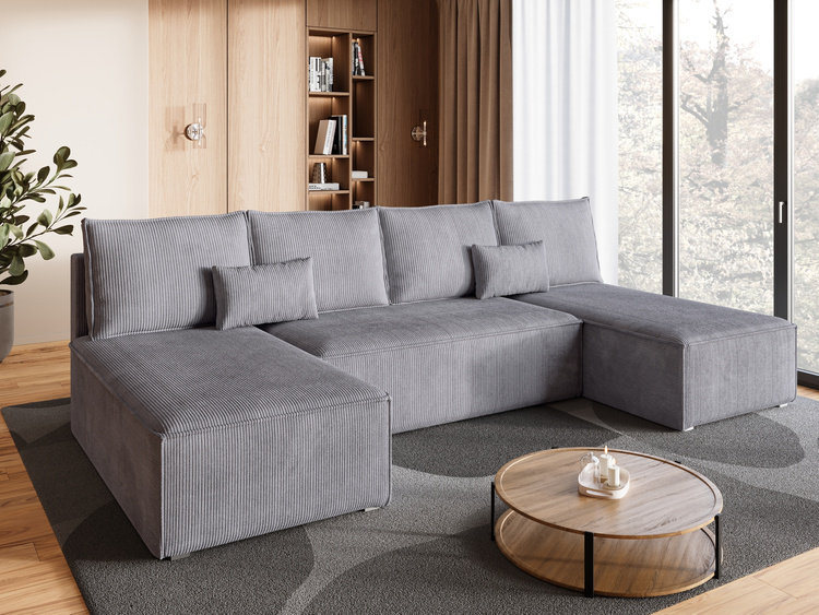 Nowoczesny sztruksowy narożnik do salonu z funkcją spania PABLO MINI