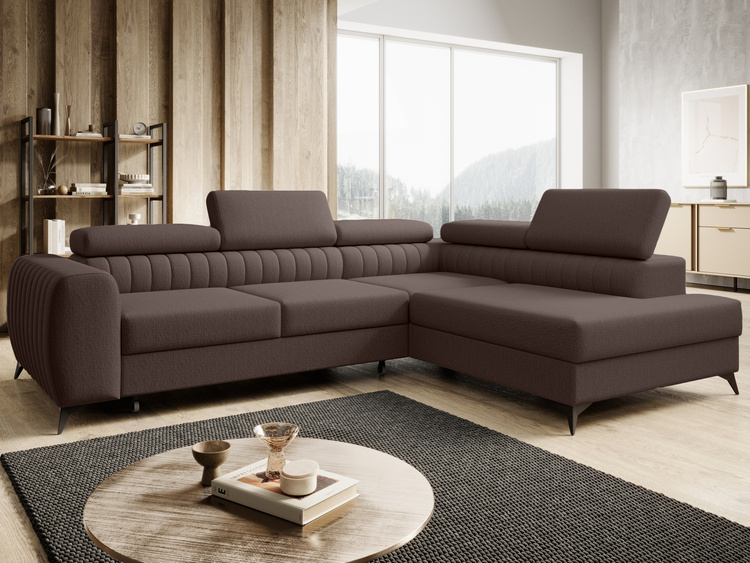 Salonowy narożnik z regulowanymi zagłówkami PAULLETTO wolnostojący pojemniki