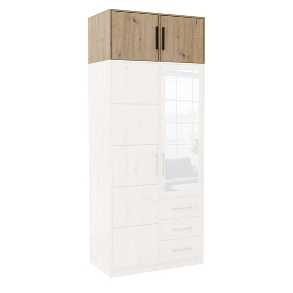 Szafa przesuwna z lamelami 203 cm z lustrami biały dąb wotan SAVINA