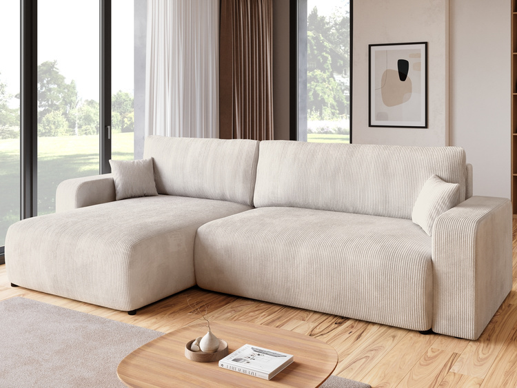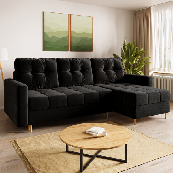 Nowoczesny zielony rozkładany narożnik do salonu z funkcją spania VANESSA