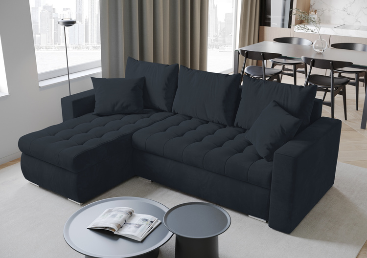 Narożnik z funkcją spania do salonu HOT SLIM butelkowa zieleń