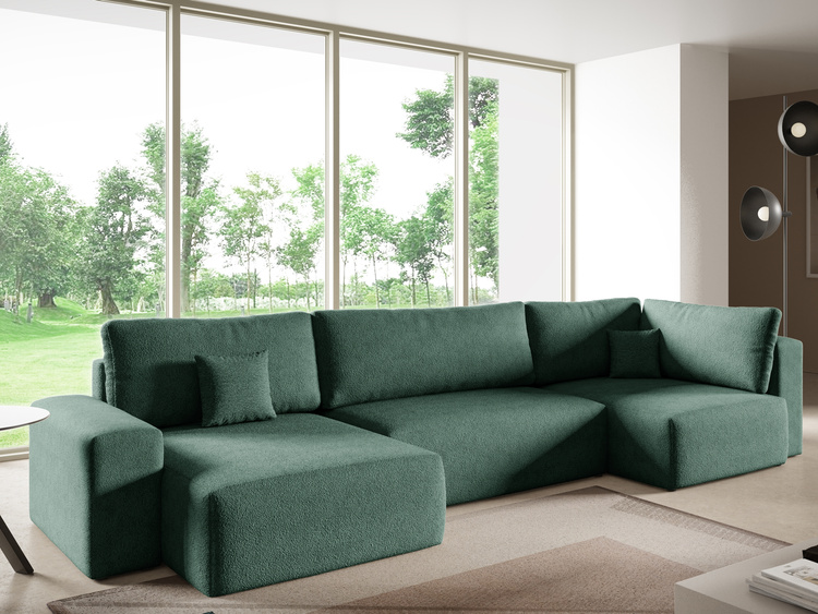 Turkusowy narożnik rozkładany z funkcją spania do salonu FOCUS