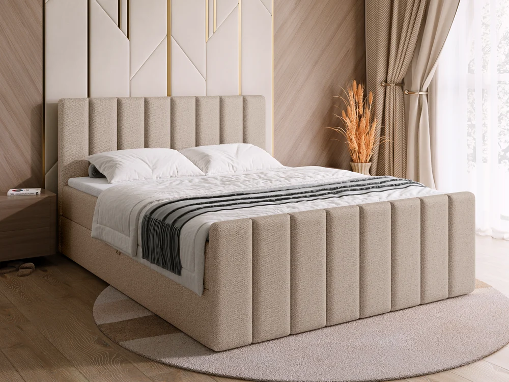 Łóżko kontynentalne 160x200 cm z pojemnikiem DETROIT pikowany zagłówek