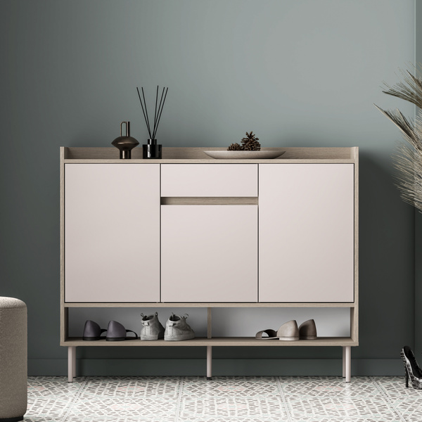 Trzydrzwiowa komoda z szufladami do salonu 120 cm NEVIO dąb artisan