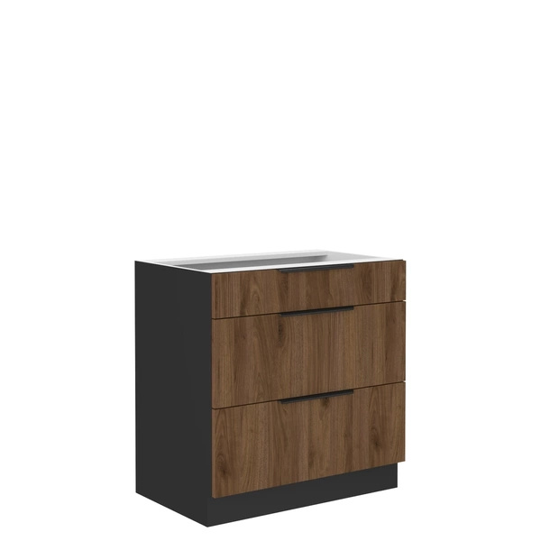- Korpus oraz fronty wykonano z płyty laminowanej o grubości 16 mm.