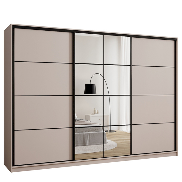 Opinie o Beżowa szafa przesuwna z lustrem 180 cm do sypialni EDGE