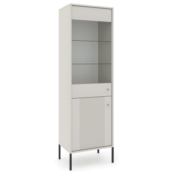 Nóżki w formie metalowego stelaża o wysokości 27,5 cm nadają szafce nowoczesny, minimalistyczny wygląd, jednocześnie zapewniając stabilność i wytrzymałość konstrukcji. Ten wyjątkowy design podkreśla współczesny charakter mebla, idealnie komponując się z różnorodnymi stylami wnętrz.