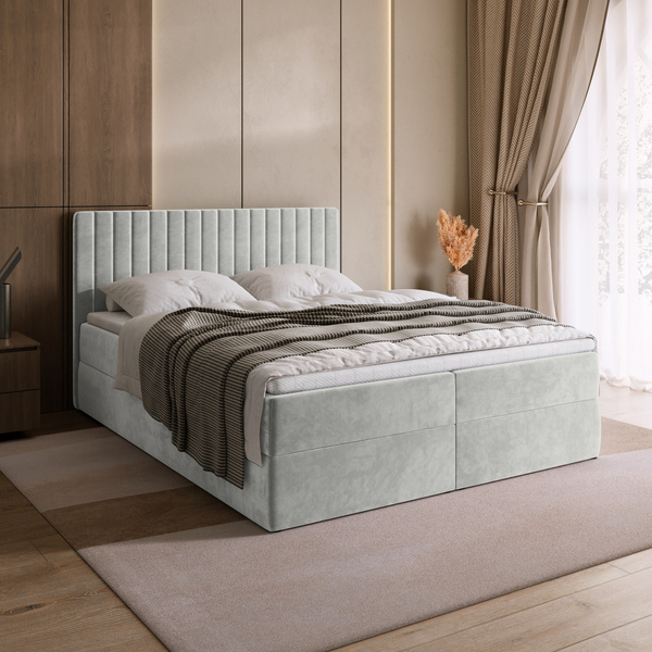 Łóżko kontynentalne 140x200 cm DENVER DUO to idealne rozwiązanie dla osób, które szukają połączenia nowoczesnego designu z codziennym komfortem. Model ten wyróżnia się podwójnym zagłówkiem o dekoracyjnym układzie szerokich, pionowych paneli – dzięki niemu całość prezentuje się niezwykle elegancko i harmonijnie w każdej sypialni.