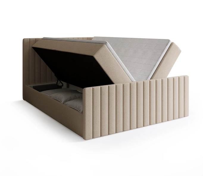 Opinie o Beżowe łóżko kontynentalne 140x200 cm z pojemnikiem na pościel DREAM DUO