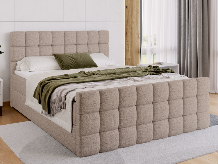 Opinie o Beżowe łóżko kontynentalne 140x200 z pojemnikiem DAKOTA DUO