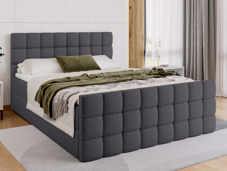 Łóżko kontynentalne 140x200 cm DAKOTA DUO to idealne rozwiązanie dla osób, które szukają połączenia nowoczesnego designu z codziennym komfortem. Model ten wyróżnia się podwójnym zagłówkiem o dekoracyjnym układzie równo pikowanych kwadratów – dzięki niemu całość prezentuje się niezwykle elegancko i harmonijnie w każdej sypialni.
