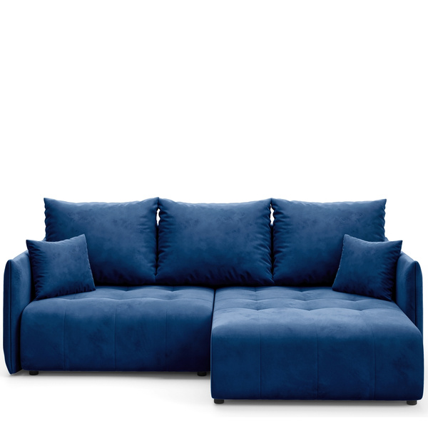Narożnik wyposażony jest w dwie miękkie poduszki oparciowe oraz dwie mniejsze jaśki, które możesz dowolnie wykorzystać jako podłokietniki lub podparcie pod głowę podczas drzemki. Dzięki temu narożnik zapewnia wyjątkowy komfort, niezależnie od tego, czy relaksujesz się, oglądając ulubiony film, czy planujesz krótki odpoczynek.