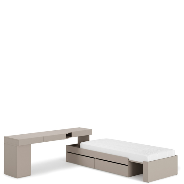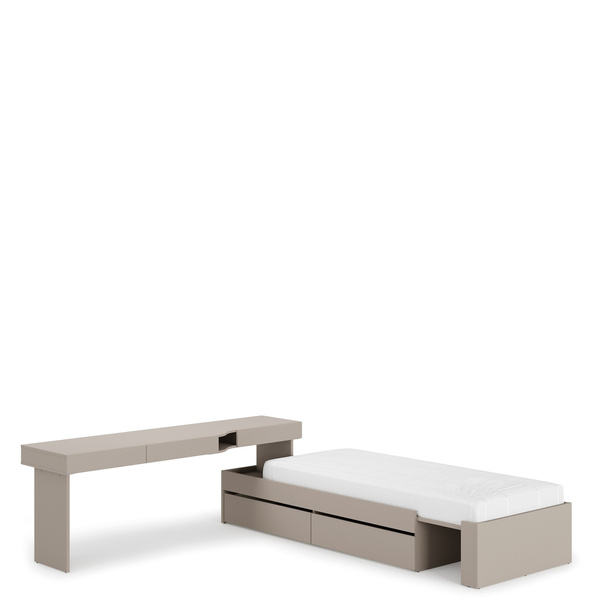 - Pod siedziskiem umieszczony jest obszerny pojemnik na pościel wykonany z płyty laminowanej. Pojemnik świetnie sprawdzi się do przechowania poduch oraz koców.