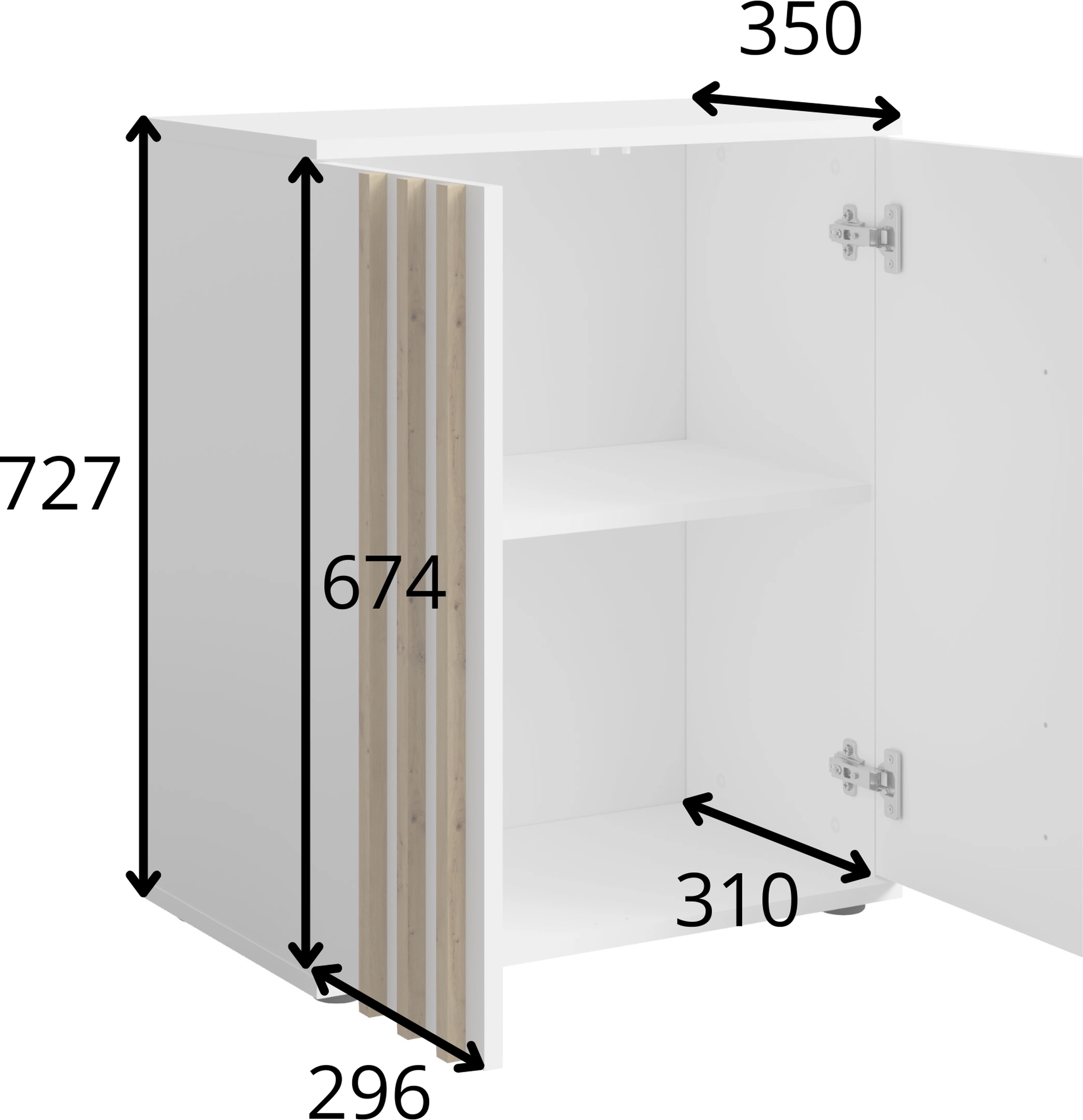 Komoda dwudrzwiowa biała TALLY 60 cm to elegancki i praktyczny mebel, który świetnie wpasuje się zarówno w nowoczesne, jak i klasyczne aranżacje wnętrz. Biel w połączeniu z lamelami w kolorze dąb artisan i srebrnymi uchwytami tworzy harmonijne zestawienie, które optycznie rozjaśni pomieszczenie i doda mu lekkości. To doskonały wybór do sypialni, przedpokoju czy salonu, gdzie liczy się nie tylko wygląd, ale też funkcjonalność.