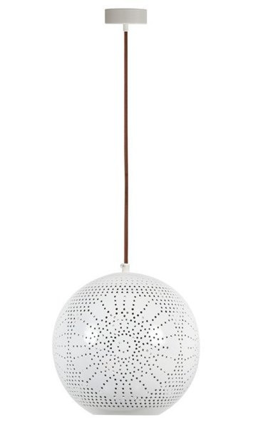 - Ażurowy klosz z metalu - dekoracyjny wzór tworzy ciekawe refleksy świetlne na ścianach i suficie.