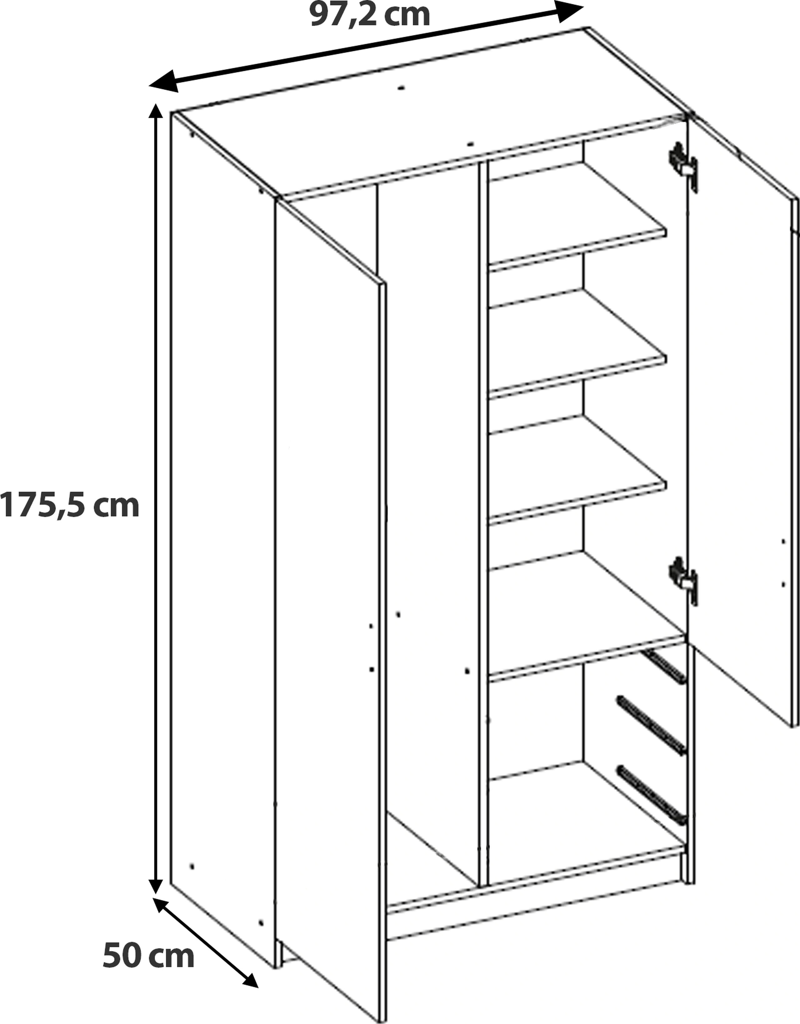 - Wymiary: wysokość 175,5 cm / szerokość 97,2 cm / głębokość 50,0 cm