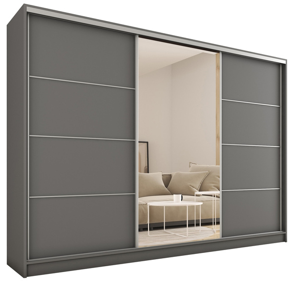 Szafa jest b.ładna, a lustro jest piękne duże. Niestety jedne drzwi są porysowane.Brakowało dużo śrubek.Prowadnice są za szerokie bo jest duża przestrzeń między drzwiami a lustrem i z boku widać zawartość szafy.Koniecznie trzeba dokupić szerokie szczotki przeciwkurzowe. Ogólnie polecam zakup tej szafy.