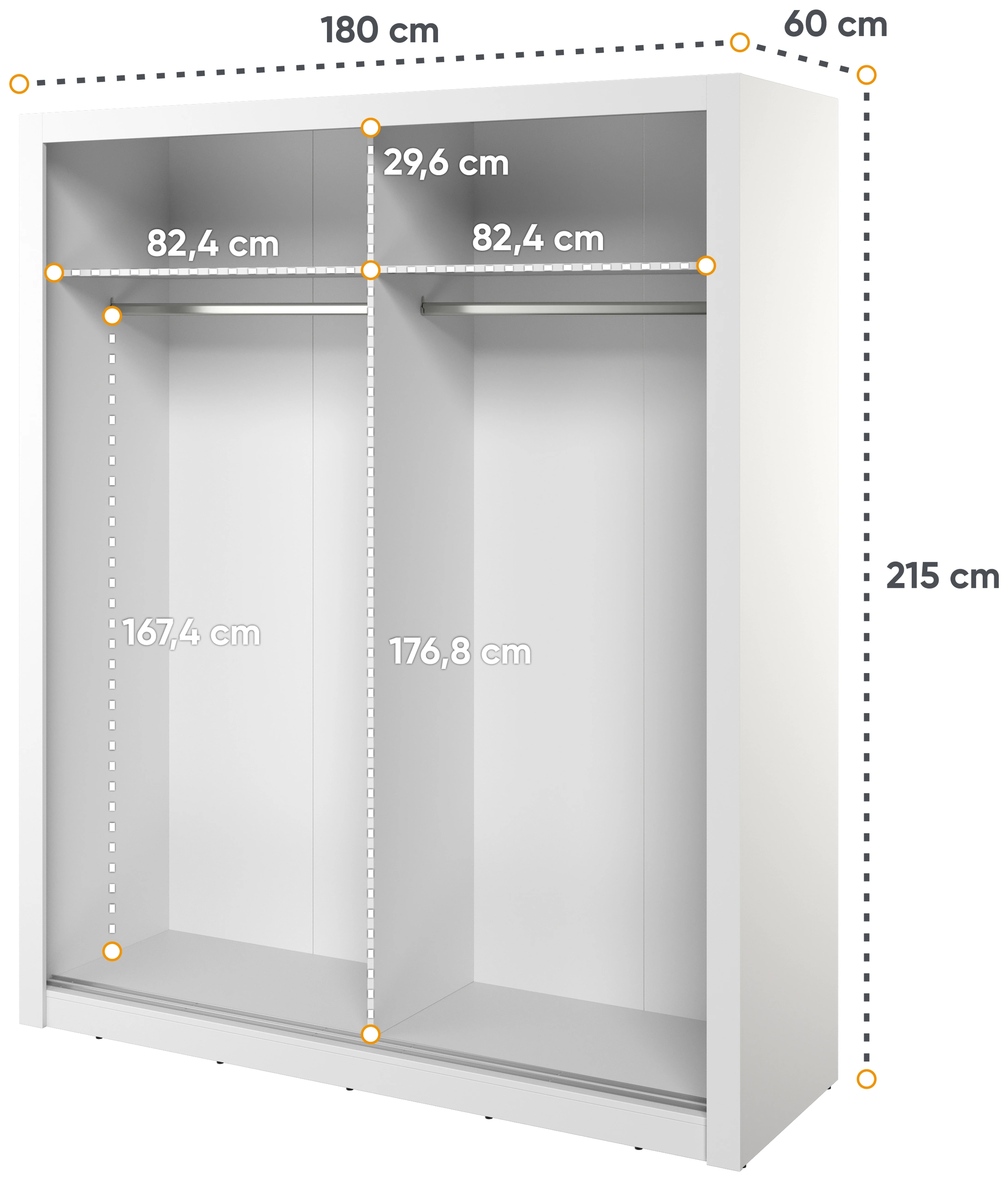 - Nóżki szafy w formie ślizgów zapobiegają przed uszkodzeniem podłogi. Wysokość nóżek sprawia, że są niewidoczne oraz nie zbiera się kurz pod konstrukcją szafy.
