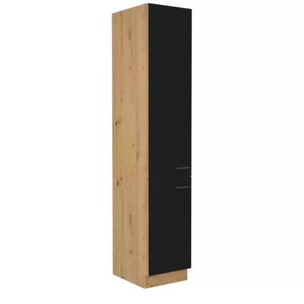 Stalowe uchwyty w czarnym kolorze zostały umieszczone na krawędziach drzwi. Zostały wykonane w kolorze prowadnicy, dzięki czemu doskonale komponują się z całością szafy.