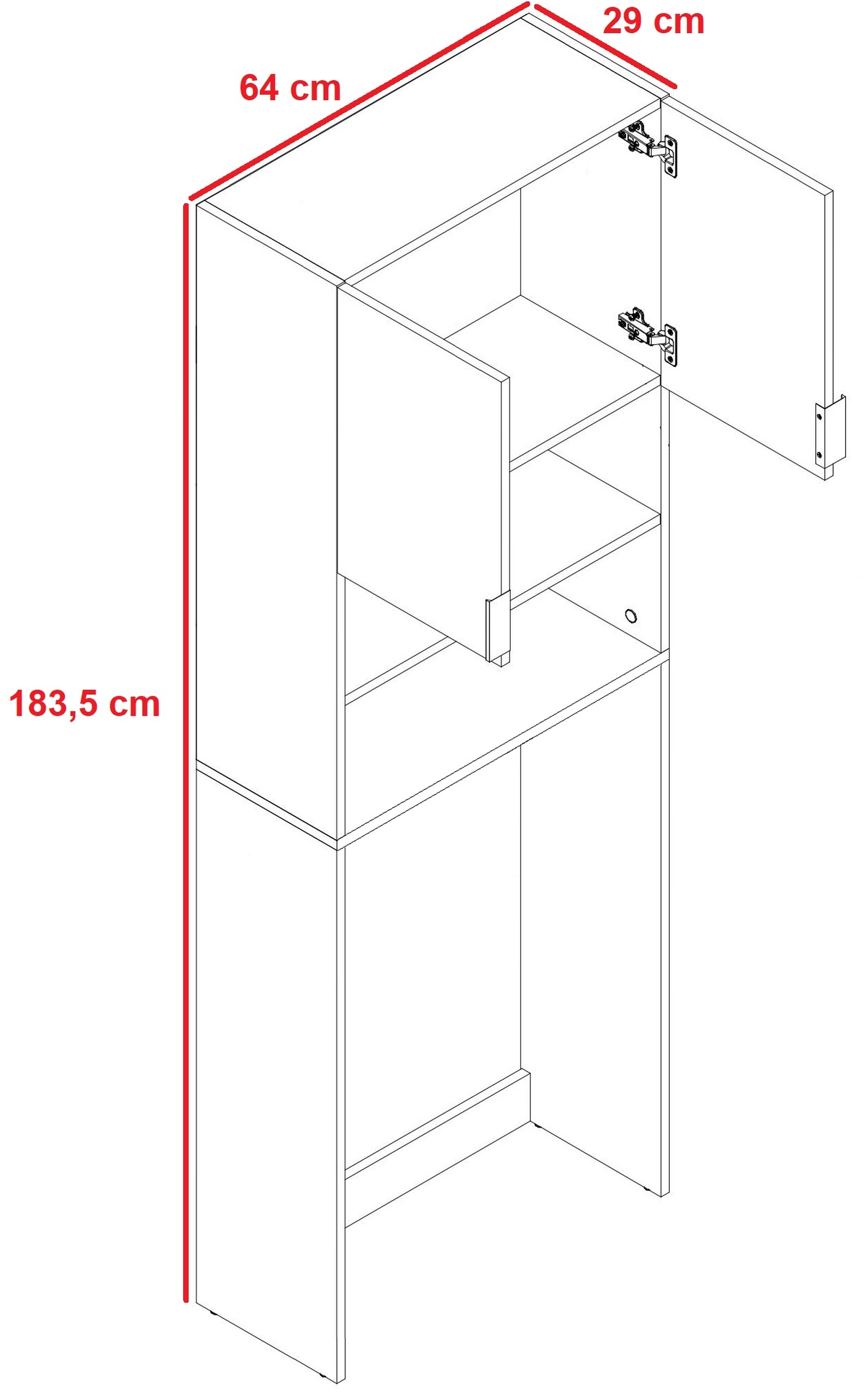 - Kompaktowe wymiary – szerokość 64 cm i głębokość 29 cm pozwalają na montaż nawet w ograniczonej przestrzeni
