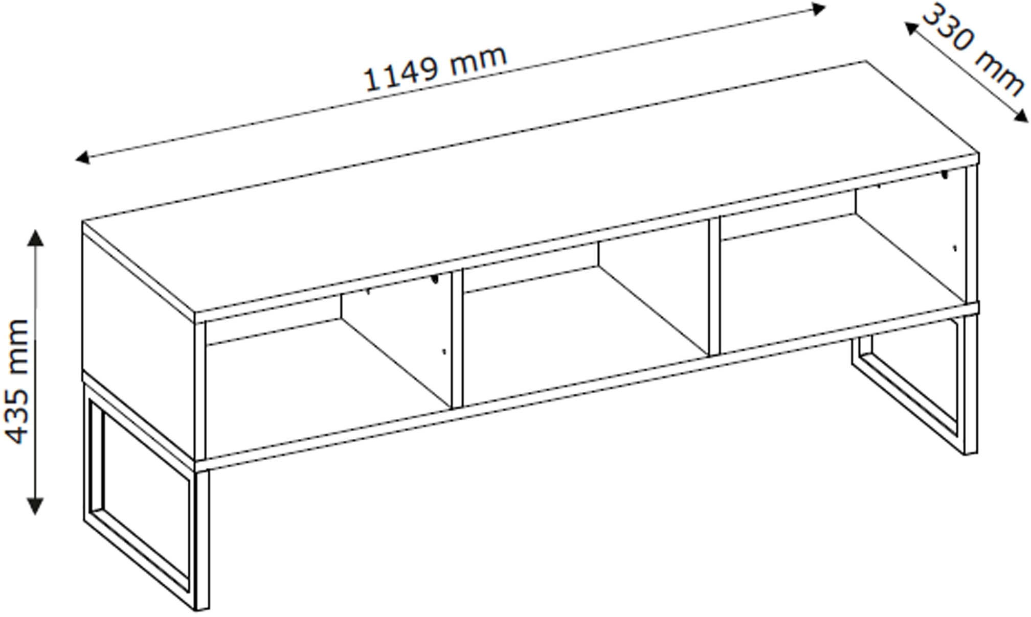 - Otwarta półka – idealna na dekoder, konsolę lub sprzęt audio