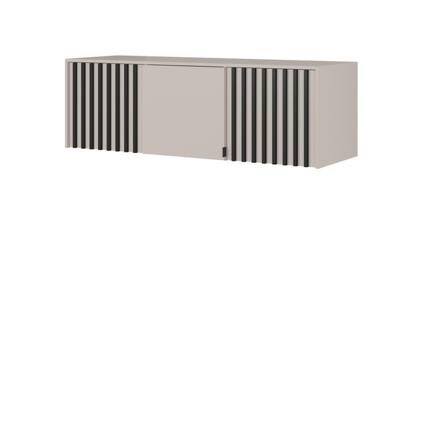 Wisząca szafka RTV ORVIETO w połączeniu białego koloru ze złotą okleiną może się stać elegancką wizytówką Twojego salonu. Została ona wykonana z wysokiej jakości materiałów. Jest wyposażona w trzy schowki, zapewniające miejsce dla różnego rodzaju urządzeń elektronicznych oraz innych akcesoriów. Obrzeża zostały zabezpieczone odporną na uszkodzenia okleiną ABS. Został tutaj zastosowany mechanizm otwierania na zawiasach puszkowych i systemie push to open. Szafka ma troje ryflowanych frontów drzwi wykonanych z płyty MDF, które dodają nowoczesności.