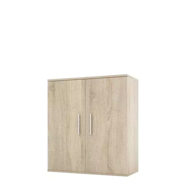 - Tył szafki stanowi płyta HDF o grubości 3 mm, co zapewnia stabilność konstrukcji oraz ochronę przechowywanych przedmiotów.