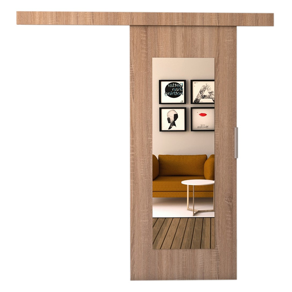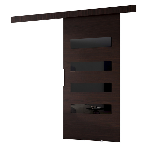 Drzwi przesuwne ze szklanymi wstawkami. Drzwi mają 96 cm szerokości i są uniwersalne; lewe/prawe. Kolor: biały