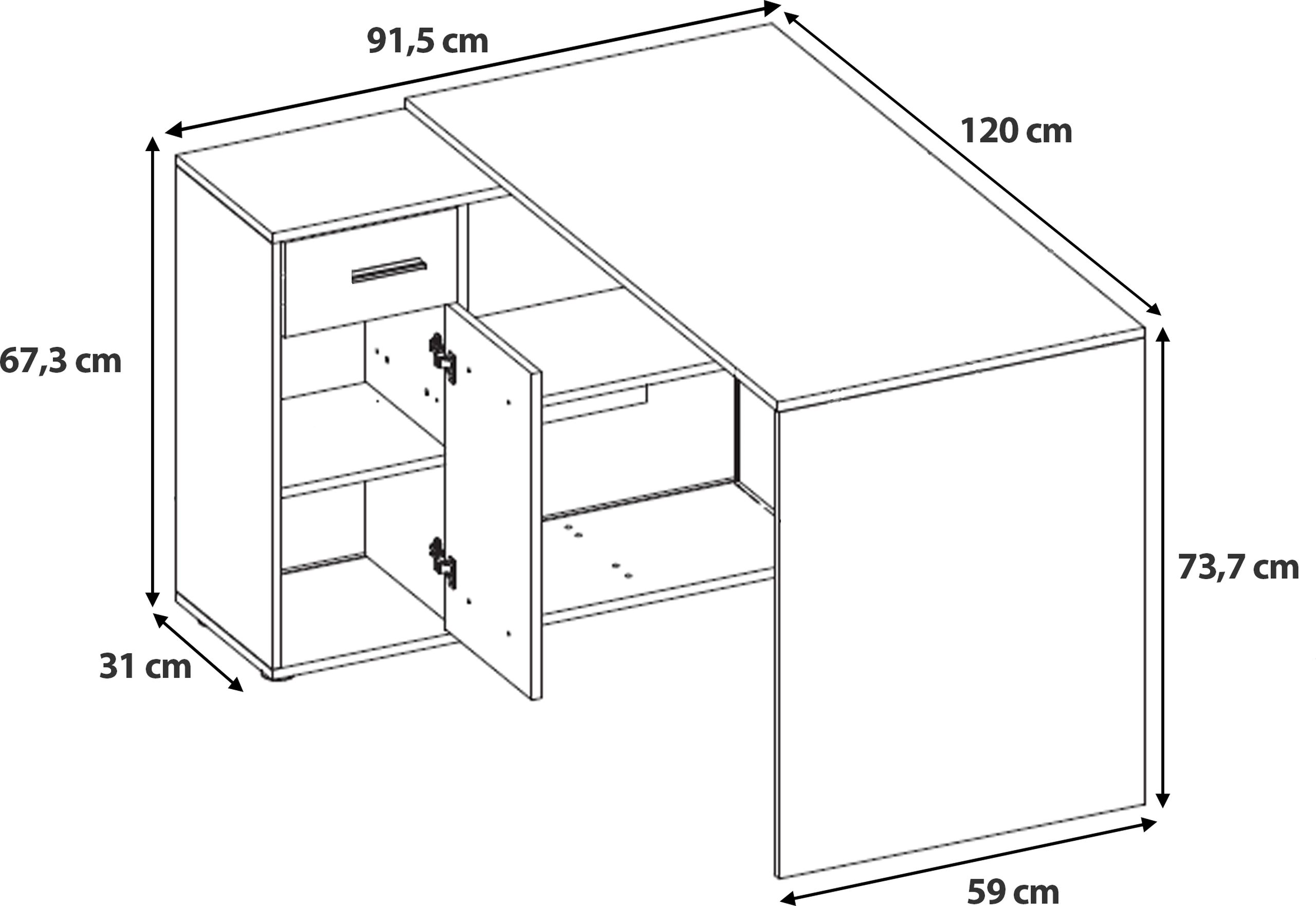 Zastanawiasz się, czy biurko narożne zmieści się w pokoju dziecka? Dzięki szerokości 120 cm i głębokości 91,5 cm NEXIO oferuje komfortową powierzchnię roboczą, nie zajmując przy tym dużo miejsca. To doskonały wybór dla każdego, kto ceni sobie porządek i funkcjonalność.