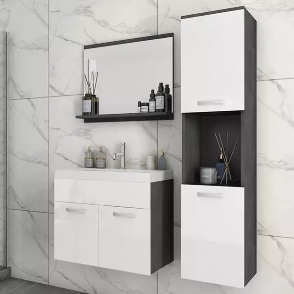 - Nóżki wykonane z metalu w kolorze czarnym umożliwiają wygodne odkurzanie pod szafą.