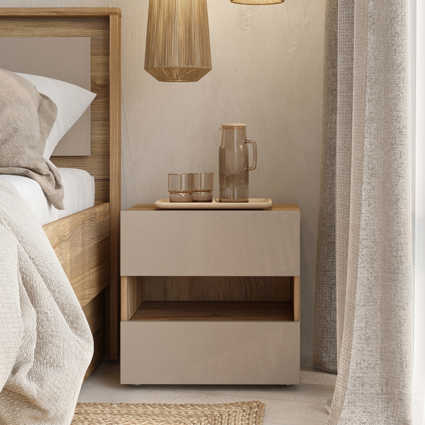 - Front w kolorze dąb sonoma – wprowadza naturalny akcent do jasnego wnętrza