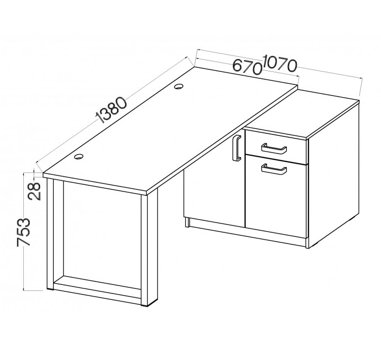 - blat: płyta laminowana grubości 28 mm zabezpieczona obrzeżem PCV,