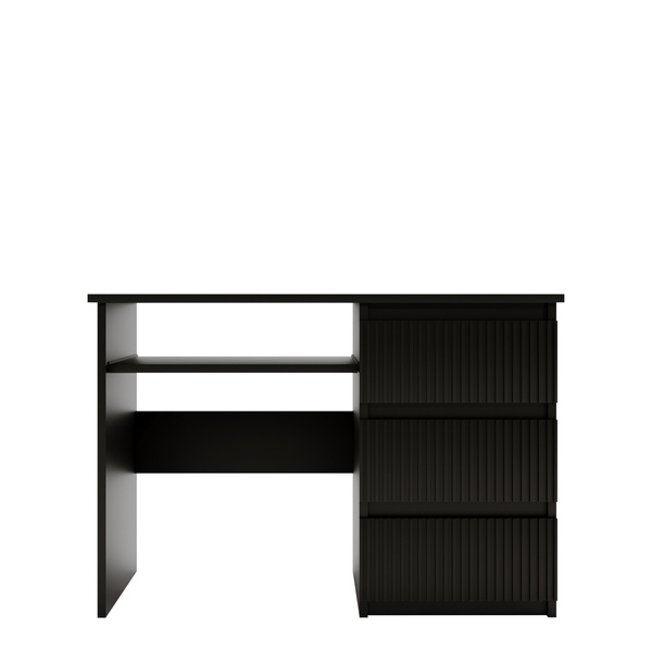 Oprócz atrakcyjnego designu, biurko to oferuje również praktyczne rozwiązania, które ułatwiają organizację pracy. Wyposażone jest w trzy przestronne szuflady, które zapewniają wystarczająco dużo miejsca na przechowywanie dokumentów, przyborów biurowych i innych niezbędnych akcesoriów. Dodatkową funkcjonalność zapewnia szafka z jedną półką, idealna do organizacji większych przedmiotów. Krawędzie biurka zostały zabezpieczone obrzeżem PCV, co zwiększa jego trwałość i odporność na codzienne użytkowanie. To nie tylko mebel, ale przemyślany element wyposażenia, który z pewnością spełni oczekiwania nawet najbardziej wymagających użytkowników.