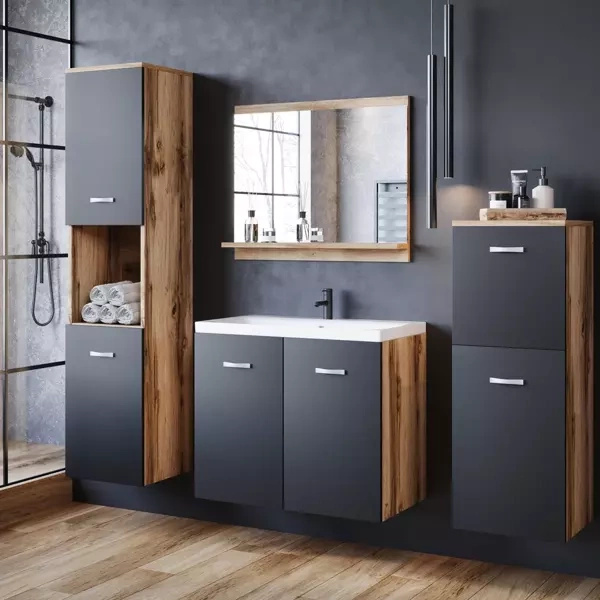Blat pod umywalkę ADENILO został wykonany z płyty MDF o grubości 22 mm, dzięki czemu jest bardzo trwały i łatwy w utrzymaniu w czystości. Wymiar blatu to 806 x 465 mm