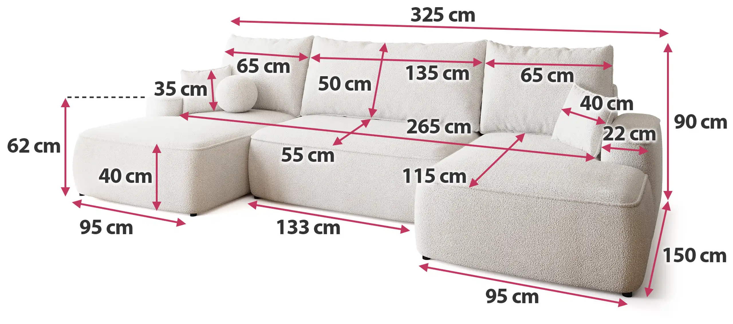 Narożnik w kształcie U z funkcją spania 120x265 cm – przestrzeń komfortu i stylu w Twoim salonie