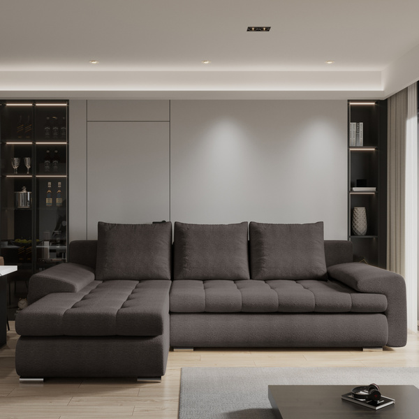 • Automat DL sprawia, że rozkładanie narożnika jest niezwykle proste – wystarczy unieść siedzisko, by w mgnieniu oka przekształcić ją w wygodne łóżko. Pojemnik na pościel zapewnia dodatkową przestrzeń do przechowywania, pomagając utrzymać porządek.