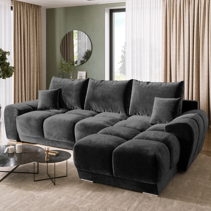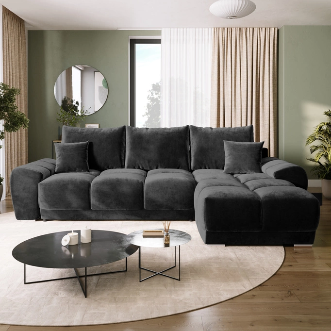 Opinie o Czarny narożnik do salonu rozkładany z funkcją spania NUBES
