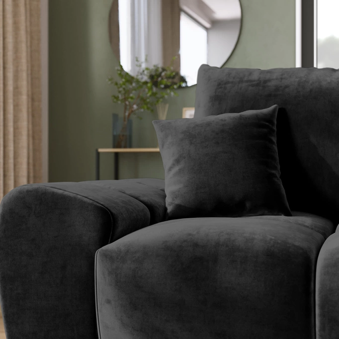 - Wolnostojąca konstrukcja – mebel w pełni obity tkaniną, idealny do ustawienia na środku salonu.