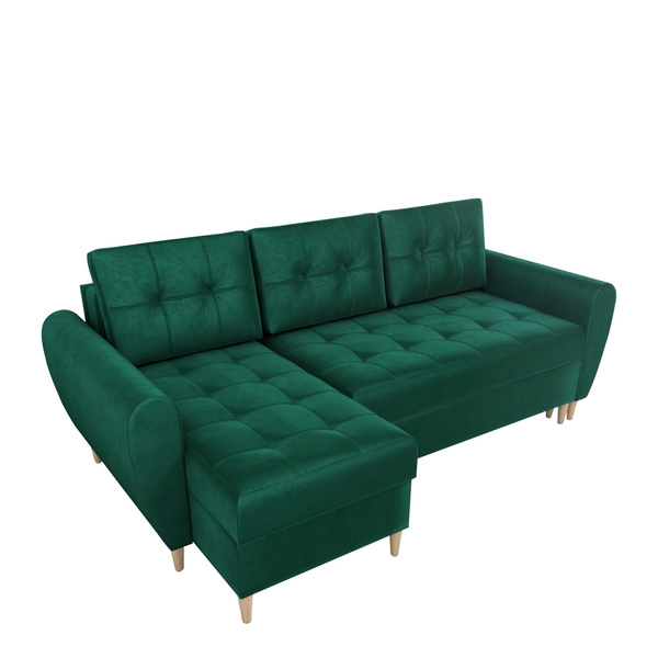 Narożnik posiada tapicerowane plecy, wykonane w tej samej tkaninie co reszta mebla. Dzięki takiemu rozwiązaniu narożnik jest wolnostojący, dzięki czemu może stanąć nawet pośrodku salonu.
