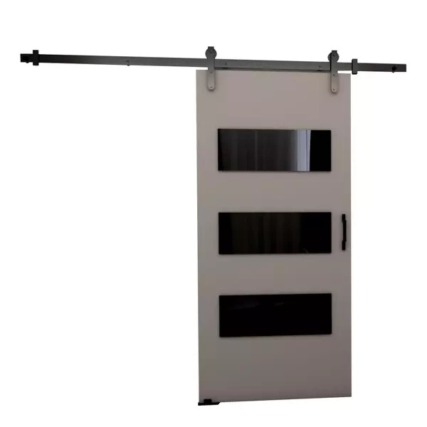 - Naścienny system przesuwny został wykonany z malowanego proszkowo metalu.