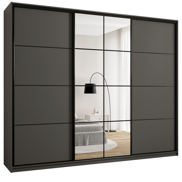 Duża grafitowa szafa przesuwna z lustrem 280 cm EDGE MAX