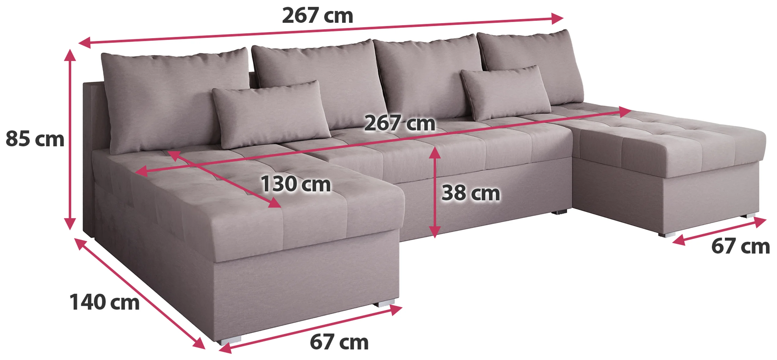 Narożnik HOT U SLIM to nie tylko elegancki mebel do codziennego relaksu, ale także praktyczna przestrzeń do spania. Dzięki funkcji rozkładania uzyskasz wygodną powierzchnię 120 × 267 cm, która sprawdzi się zarówno podczas wizyty gości, jak i na co dzień. To idealne rozwiązanie, jeśli cenisz sobie wielofunkcyjne meble, które dostosowują się do Twoich potrzeb.